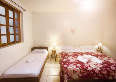 Quarto para 4 pessoas com 1 cama casal e 2 camas solteiro (pode ter beliche).